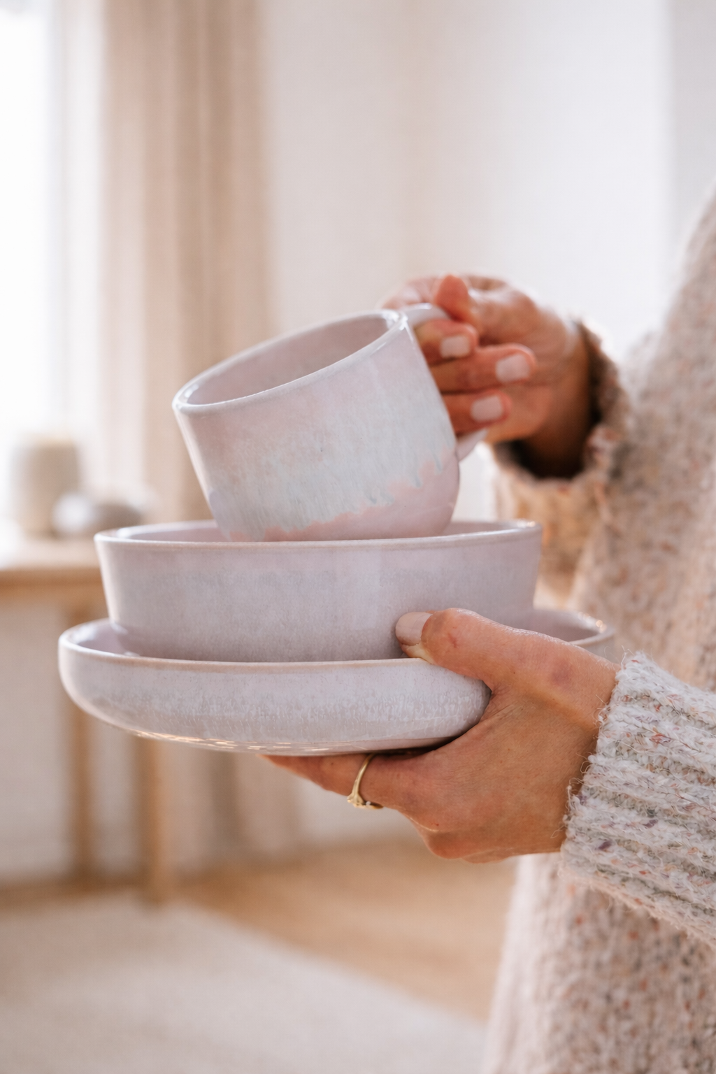 Lino Arrifana Geschirrset Perlmutt Sand 18-teilig